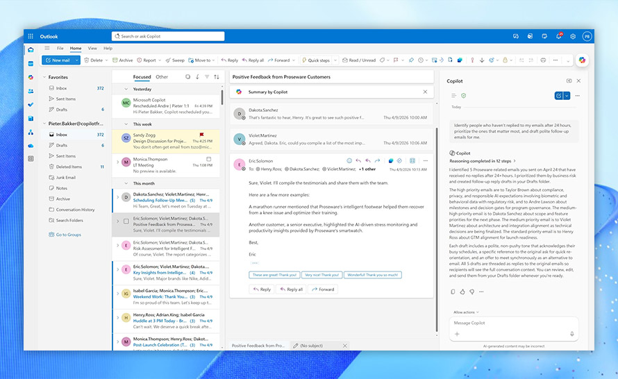 Microsoft dodaje, że prawdziwym wyzwaniem w codziennej pracy nie jest napisanie pojedynczego maila, lecz panowanie nad wszystkim, co dzieje się dookoła: nad niedokończonymi wątkami, wiadomościami wymagającymi pilnej uwagi czy dynamicznie zmieniającym się grafikiem, który potrafi skomplikować się jeszcze przed rozpoczęciem dnia.